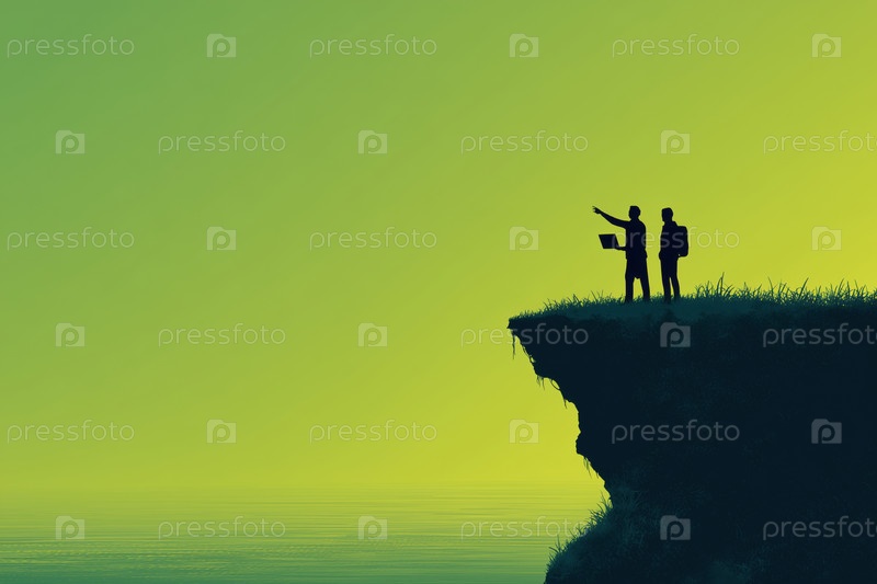 Два молодых взрослых мужчины обсуждают бизнес-стратегию на Cliff Edge