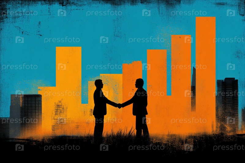 Силуэты двух мужчин среднего возраста, пожавших друг другу руки на открытом воздухе