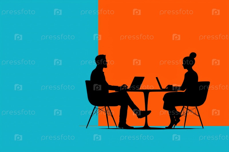 Молодой взрослый мужчина и женщина работают на ноутбуках в офисной обстановке