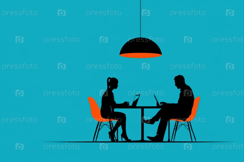 Молодая взрослая женщина и мужчина работают на ноутбуках в современном офисе
