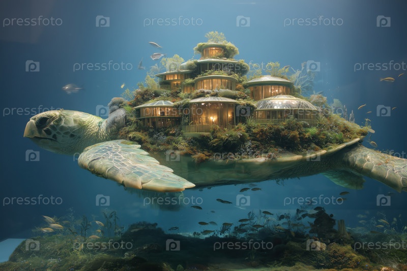 Гигантская морская черепаха Плавание под водой Ношение фантазии Структура здания