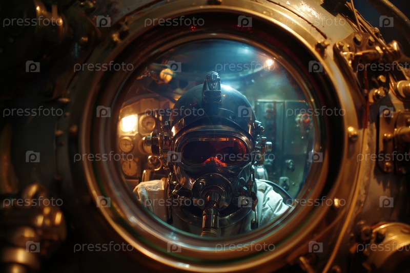 Портрет молодого взрослого мужчины в водолазном костюме, работающего на подводной лодке