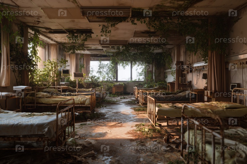 Заброшенное больничное отделение перерастает растительностью и солнечным светом