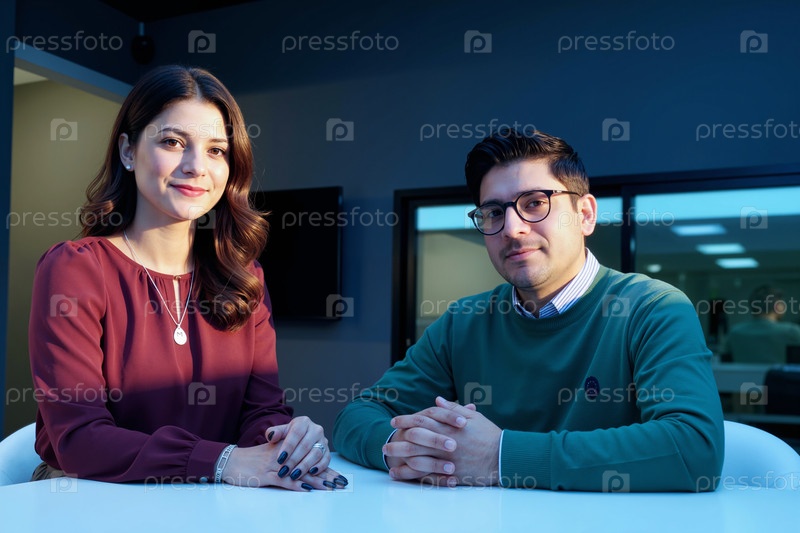 Портрет молодой женщины и молодого человека, сидящих вместе