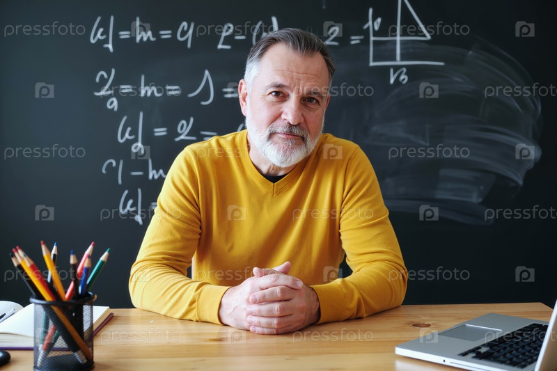 Портрет мужчины среднего возраста, преподающего математику в классе