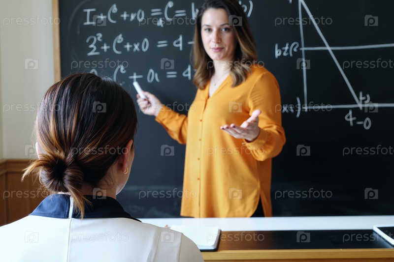 Женщина среднего возраста преподает математику молодой взрослой студентке