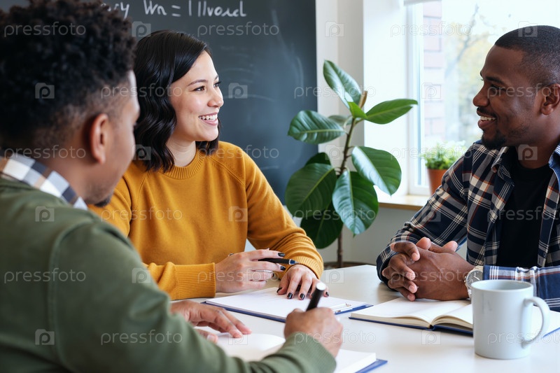 Мультиэтнические молодые взрослые сотрудничают во время неформальной встречи в офисе