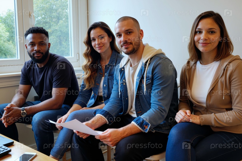 Мультиэтнические молодые взрослые сотрудничают во время неформальной встречи в офисе