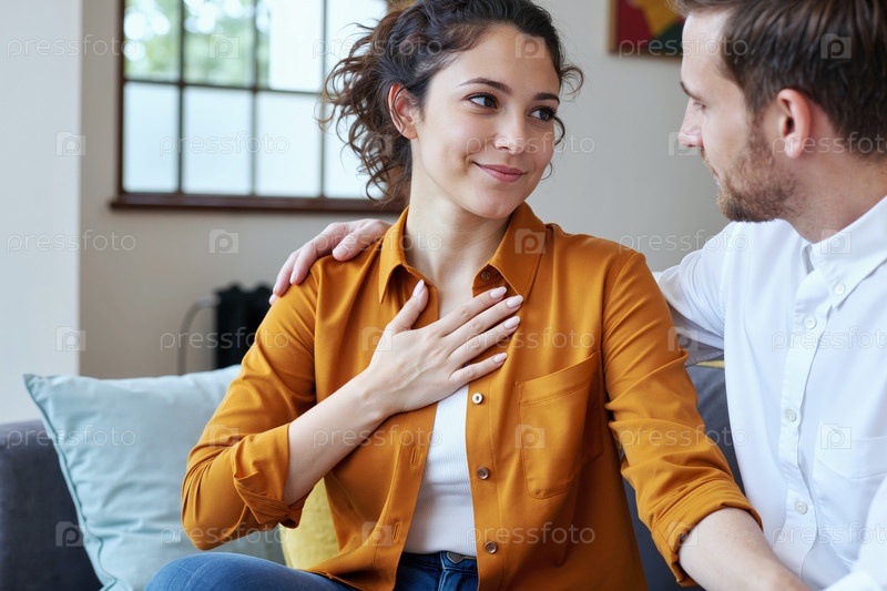 Молодая женщина улыбается, выражая благодарность молодому человеку