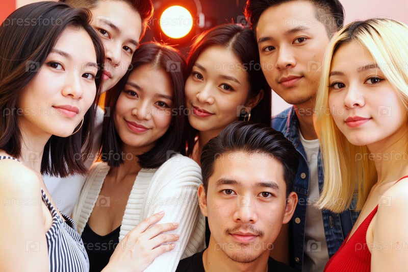 Портрет группы молодых взрослых азиатских мужчин и женщин, улыбающихся на камеру