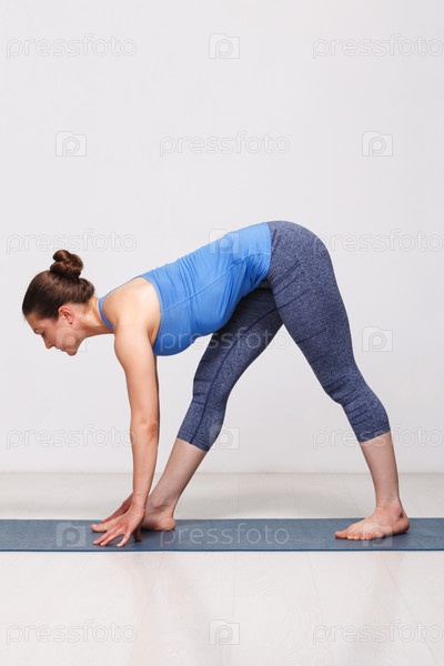 Женщина Doang Vinyasa Yoga Ladyna Parsvttain - интенсивная растяжная страница на йога-матке в студии на подогреваемых сумках