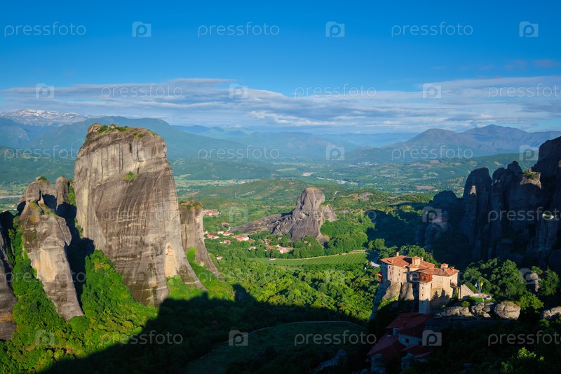 Монастырь Русану и монастырь Святого Николая Анапуссы в знаменитом греческом туристическом месте Метеора в Греции утром