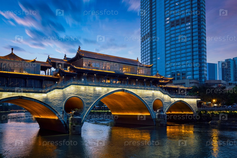 Мост Аншунь ночью, Чэнду, Китай