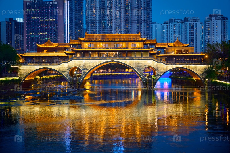 Мост Аншунь ночью, Чэнду, Китай
