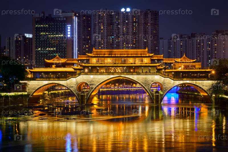 Мост Аншунь ночью, Чэнду, Китай