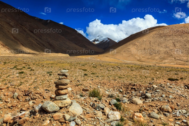 Каменная пещера в проходе Намшанг Ла в Гималаях.Ладак, Индия