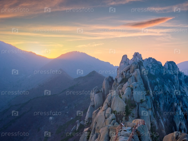 Вид с скалы Ульсанбави на закате.Национальный парк Сеораксан, Южная Корея