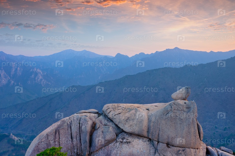 Вид с скалы Ульсанбави на закате.Национальный парк Сеораксан, Южная Корея