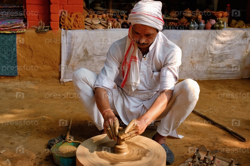 Индийский гончарник на работе, Шилпаграмм, Удайпур, Раджастхан, Индия