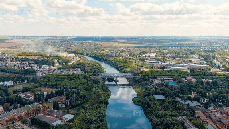Елец, Липецкая область, Россия Река Сосна Мост из свиного железа, вид с воздуха