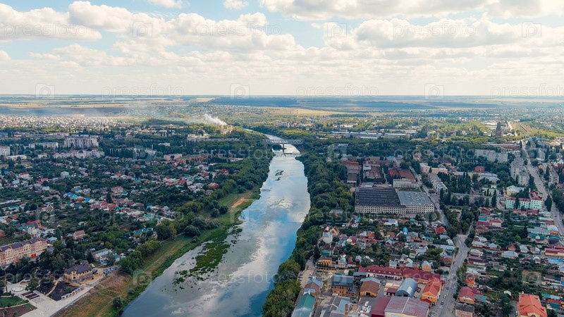 Елец, Липецкая область, Россия Река Сосна Мост из свиного железа, вид с воздуха