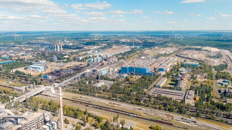 Липецк, Россия.Железо и сталелитейная промышленность.Область левого берега, вид с воздуха