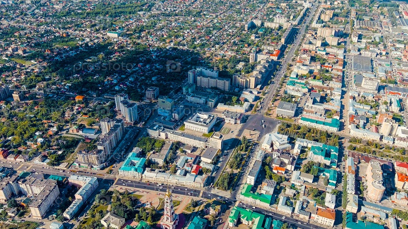Тамбов, Россия.Международная улица.Площадь Ленина.Панорамный вид на город с воздуха, Вид из воздуха