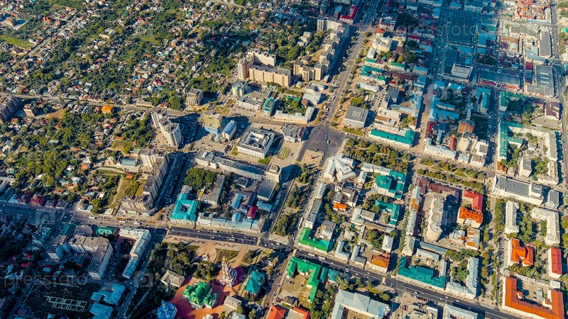 Тамбов, Россия.Международная улица.Площадь Ленина.Панорамный вид на город с воздуха, Вид из воздуха