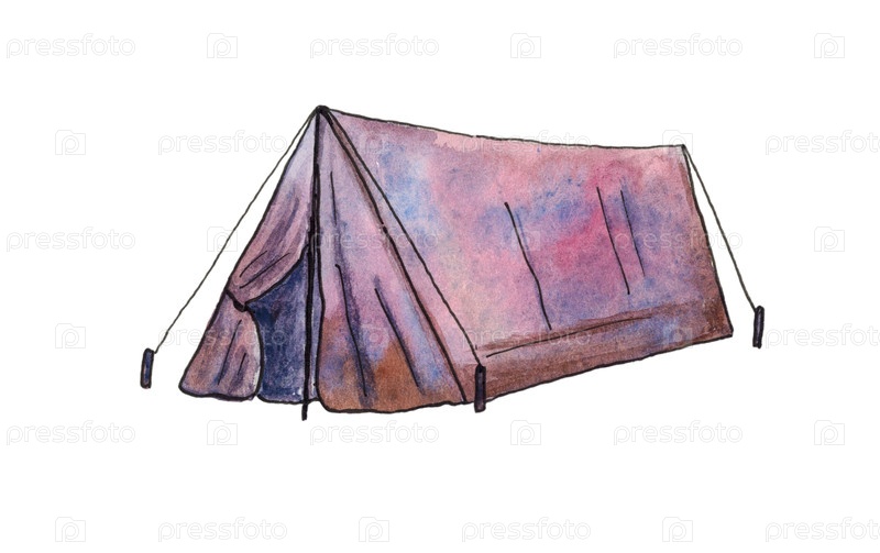Туристическая палатка, изолированная на белом фоне. иллюстрация написана вручную акварелью