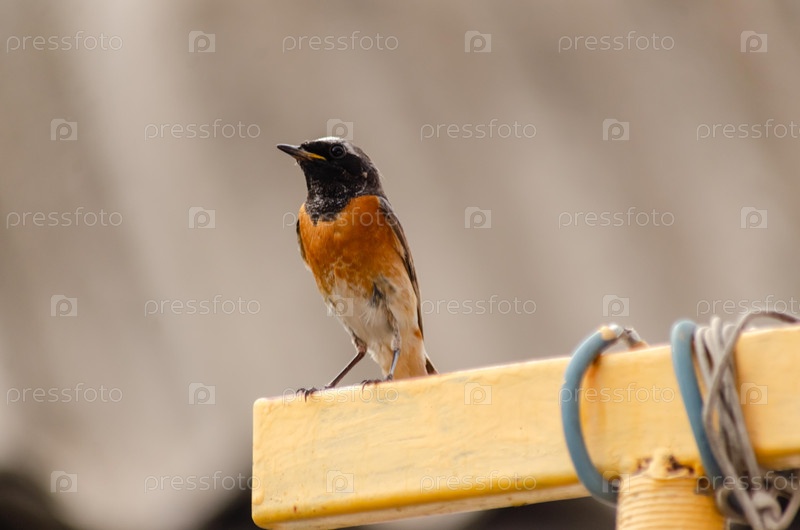 Близкий план чернохвостого (мужчины), сидящего на краю ярко-желтого металлического профиля