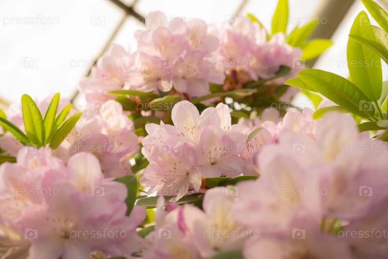 Розовые пышные цветы ботанический сад рододендрон катеуба