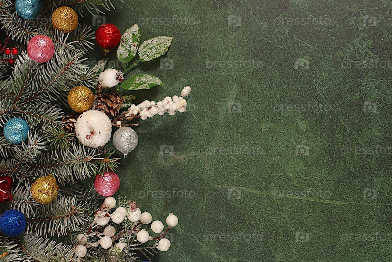 Праздничная зимняя поздравительная открытка и баннер на экране, красивый рождественский и новогодний фон с огнями, ювелирными изделиями, игрушками и живыми ветвями пихты, дизайн продукта для праздничной рекламы,