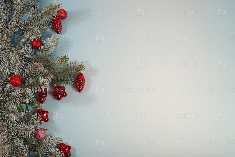 Красивый рождественский и новогодний фон с живыми ветвями снежных елей, украшениями и игрушками, дизайн продукта для праздничной рекламы, концепция канун Рождества, зимняя карта праздника и баннер