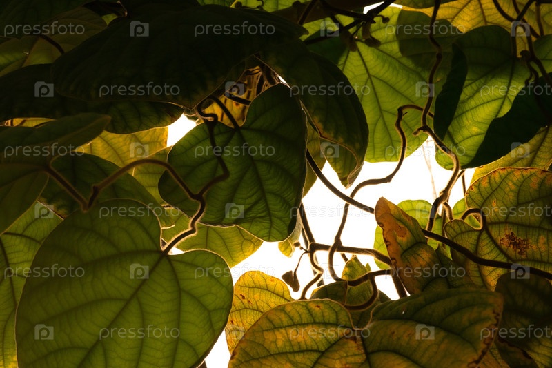 Зеленые листья, через которые проходит свет Aristolochia tomentosa