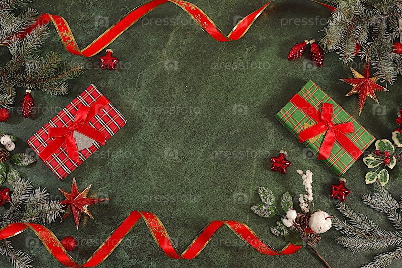 Подарочные коробки на праздничном фоне с рождественскими украшениями, концепция новогодних продаж и покупок, Черная пятница, баннер продвижения магазина и шаблон экрана