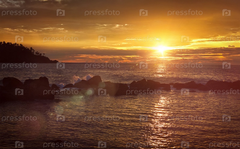 Закат океана с большой панорамой облачного ландшафта.Мирисса, Шри-Ланка