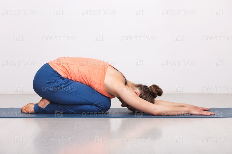 Женщина отдыхает в хата-йоге puna Baasan baby squeak