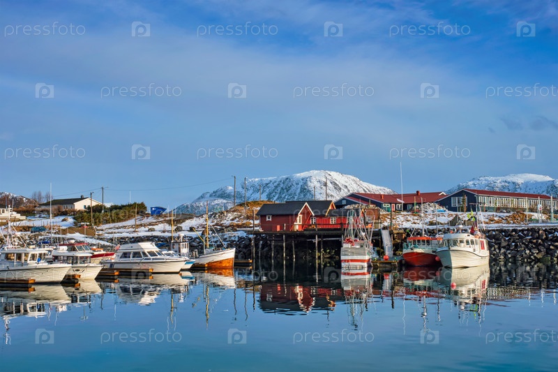 Рыболовные лодки и яхты на пирсе в Норвегии