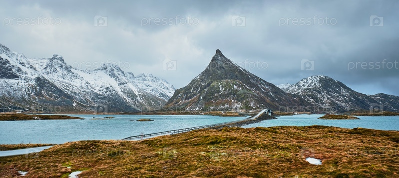Панорама Fredwang Bridges Zimoi.Остров Лофотенский, Норвегия