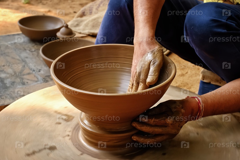 Индийский гончарник на работе, Шилпаграмм, Удайпур, Раджастхан, Индия
