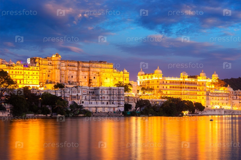 Городской дворец в Удайпуре вечером.Удайпур, Индия