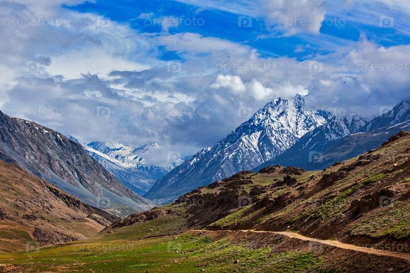 Гималайский пейзаж. на пути к озеру Чандра Тал (4300 м). долина Спити, Химачал-Прадеш, Индия