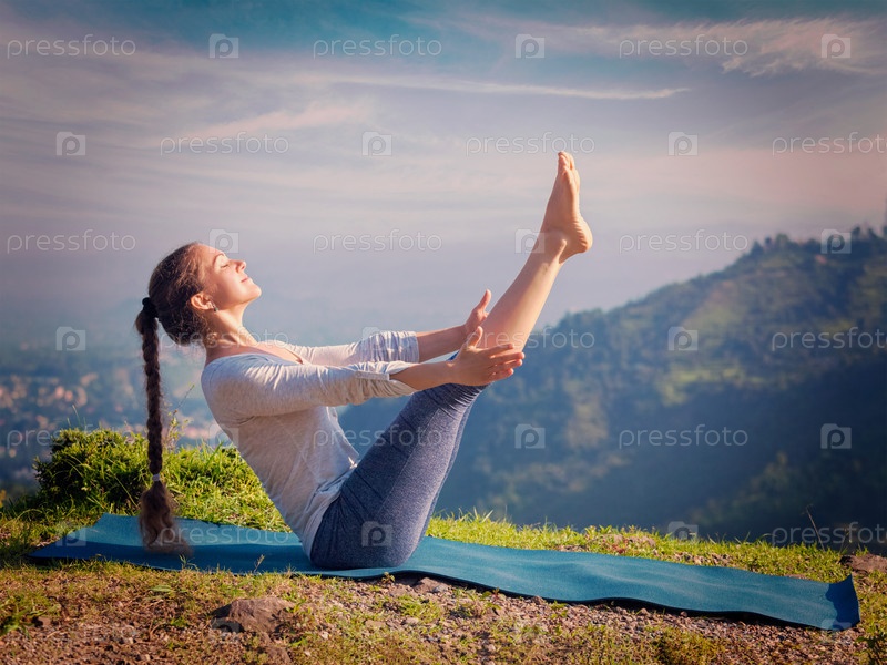 Женщина, выполняющая Ашьябо Виньяс Йогу Асаина Навасана - a bat appeal