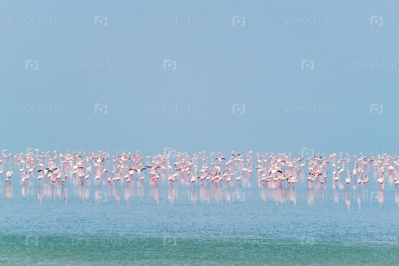 Розовый фламинго на Соленом озере Самбар в штате Раджастхан, Индия