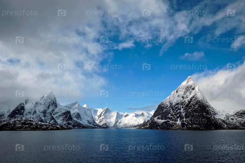 Норвежский фьорд и горы со снегом зимой