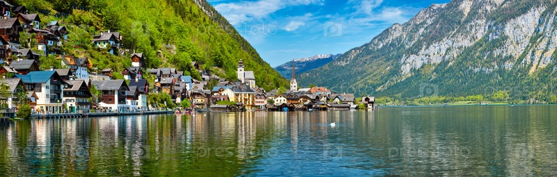 Панорама деревни Холлштат и Галлстаттер-Лок, Австрия