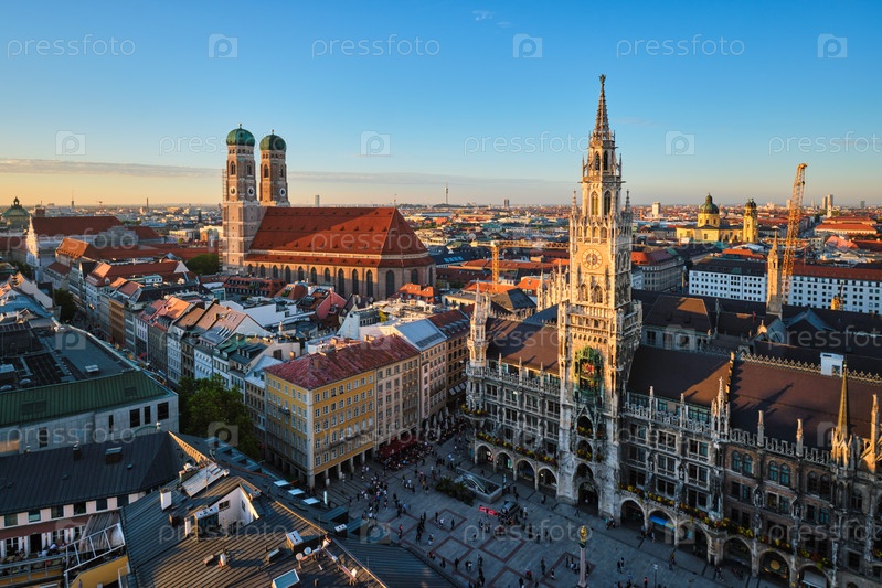 Напишите в духе Мюнхена - Marienplatz, Neues Rathaus и Frauenkirche в лечебниках Святой Петры Заката