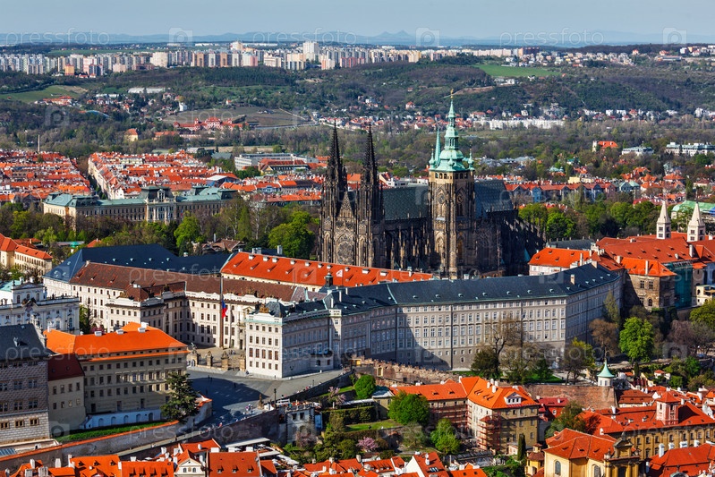 Вид из воздуха на Градканы: собор Святого Вита (Святой Витт) и Пражский замок
