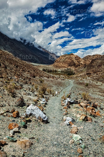 Пешеходная тропа к священному озеру Лохат-Цо в Гималаях Долина Нубра, Ладакх, Индия