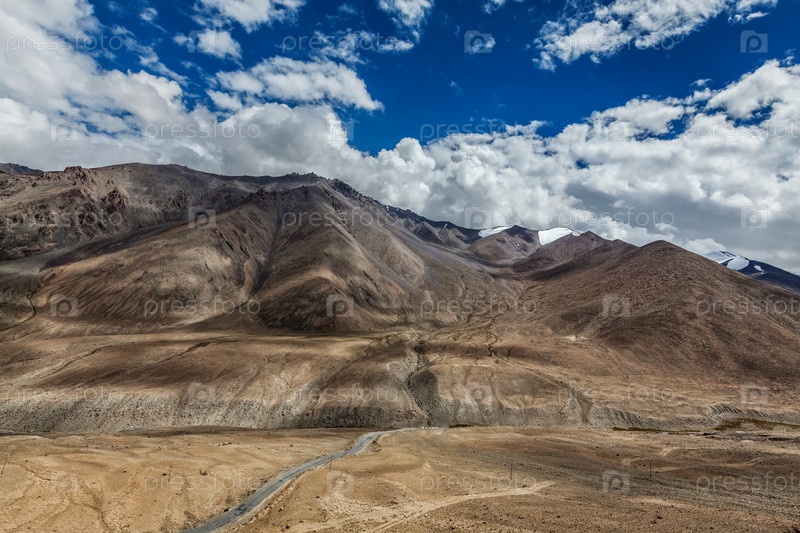 Высокая горная дорога в Гималаях недалеко от перевала Кардунг-Ла в Ладакхе, Индия